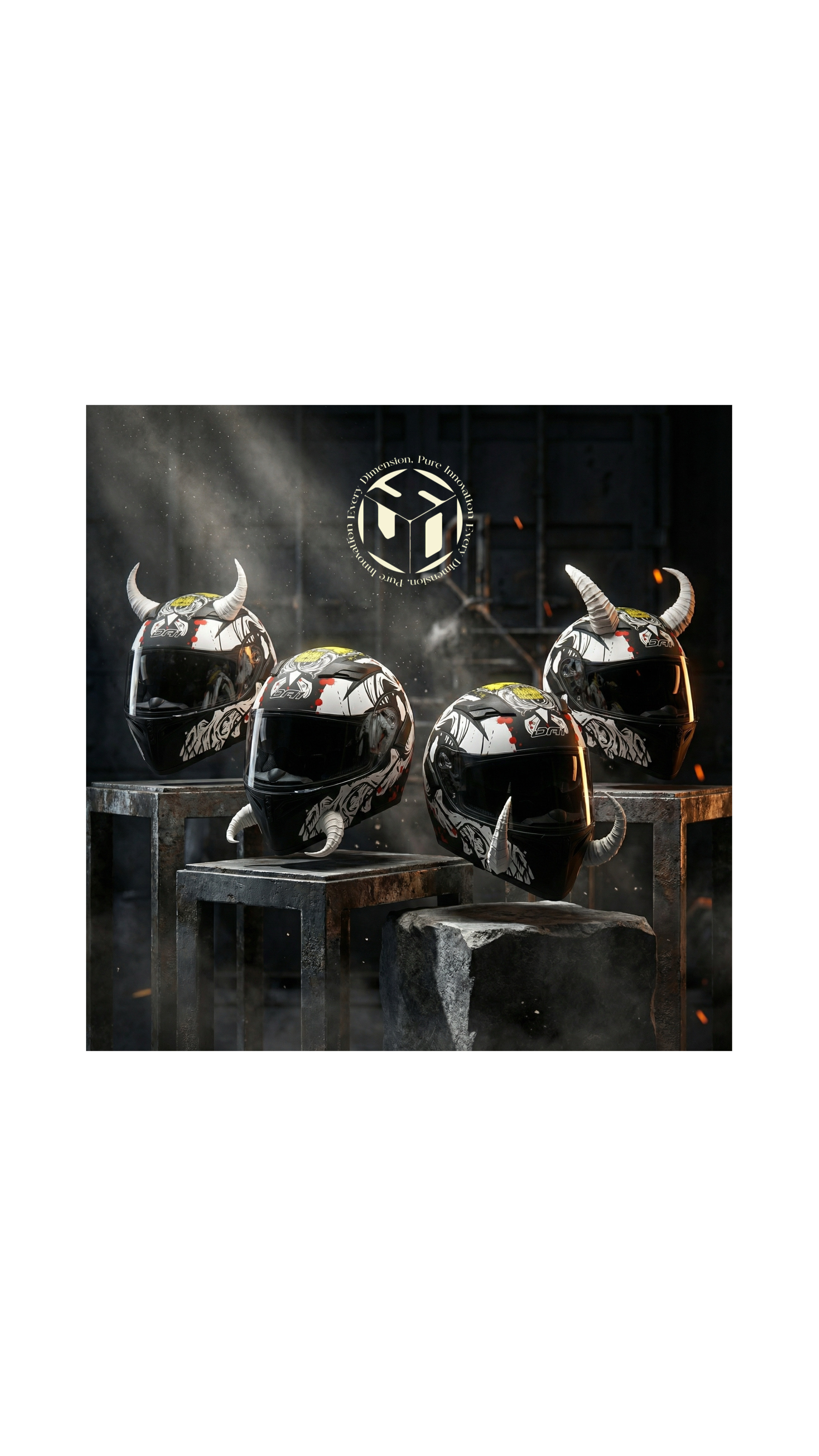 مدل فَنگ (Fang) براى موتورسوارانى طراحى شده كه دنبال يك ظاهر فوق خشن، شاخص وحيوانى هستند. فرم خميده و لايه لايه اين شاخها كاملاً حس «نيش تيز» را منتقل مى كند و روى كلاه هاى مشكى، گرافيتى يا حتى ساده جلوه اى فوق العاده تهاجمى ايجاد مى كند.